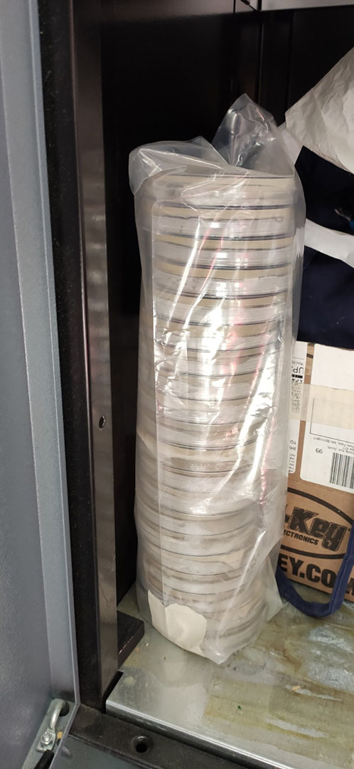 When it's done we can regroup the petri Dishes in a bag and put it in a dark space