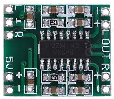 Then to test it I just want to use a small board call DPAM8403 which is as dual amplifier 3W, powered by 5v .