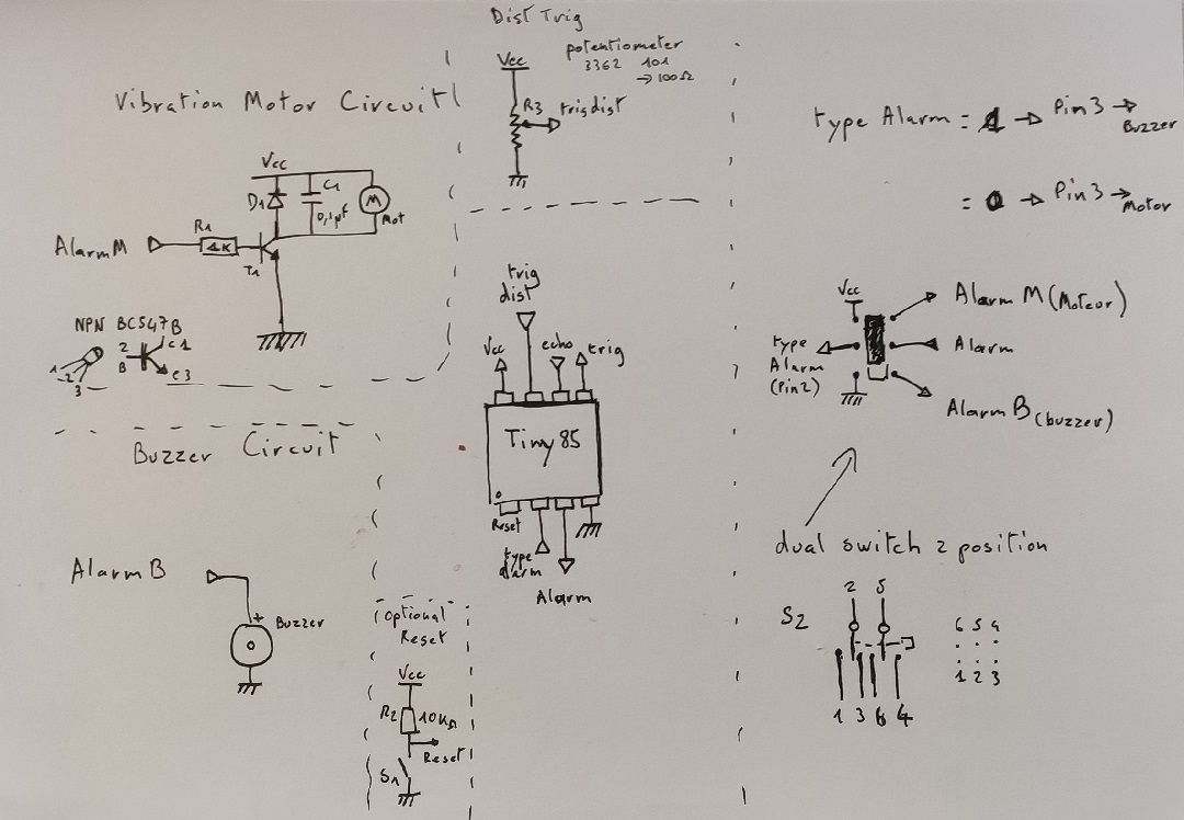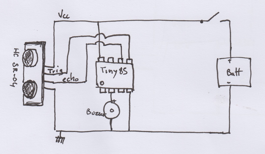 I will use a ultrasonic detector HC-SR04, a buzzer and an ATtiny85