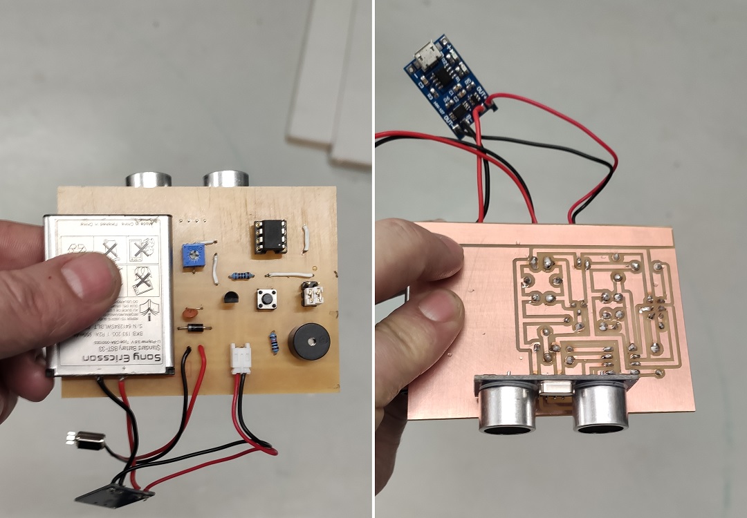 I want to equip a cap for blind people with a proximity detector and a buzzer. Because their cane and arms do not tell them about objects at the level of their face