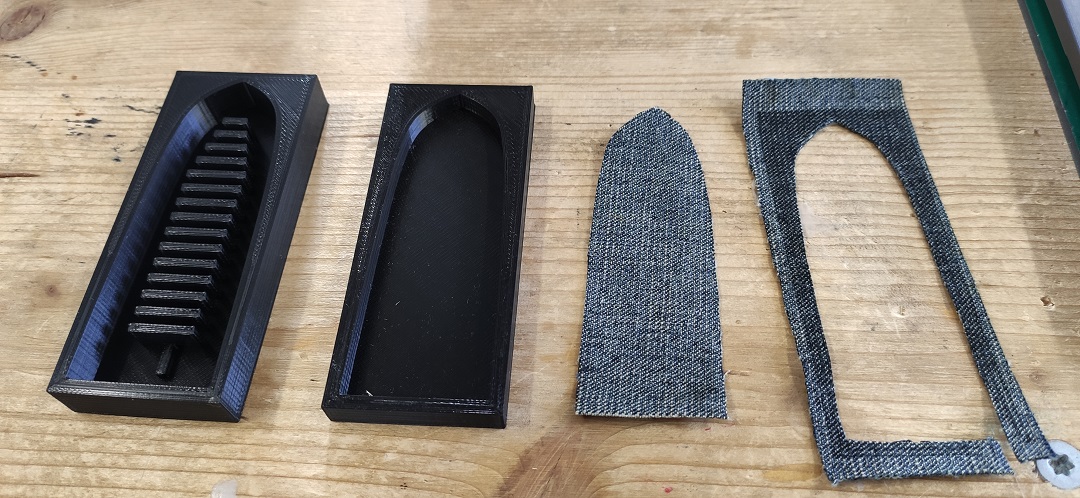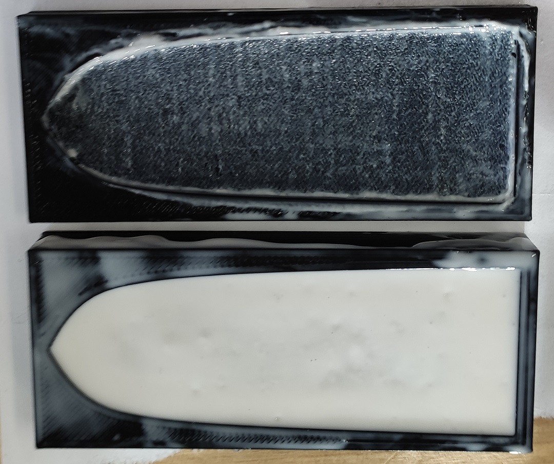 Then I casted silicone in it, note that in flat mold I put a little bit of silicone then a piece of coton tissue and the again some silicone because I want this part to not be able to inflate in order to be the inside of the finger.
