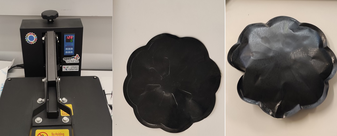 I will try to hot press them at 140° which is normally more than the melting temp, but I don't to try over this limit because as you probably know: PVC (Poly Vinyl Chloride)/vinyl/pleather/artificial leather will emit pure chlorine gas when burn.