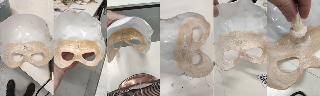 For the Masquerade I made a silicone mask with an RGB led include in it, The mask was create layer by layer using a tampon and even the wires were put inside.