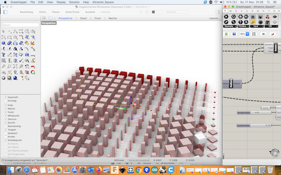 In this week I enjoied my experiences in the fascinating world of parametric pattern design. I made some first designs with Rhinoceross Grasshopper and so experimented with lovely forms. 3D printing on textiles was also very exiting part of theis week.