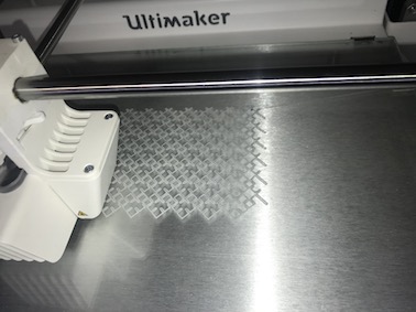 Another experiment (which I did at the begining) was simple Polyline which I just designed using Fusion 360 before I learned to work with Grasshopper. With this I just wanted to see how 3D printing on textile works.